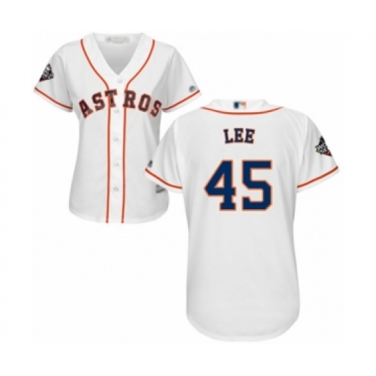 Women's Houston Astros #45 Carlos Lee Authentic White Home Cool Base 2019 World Series Bound Baseball Jersey