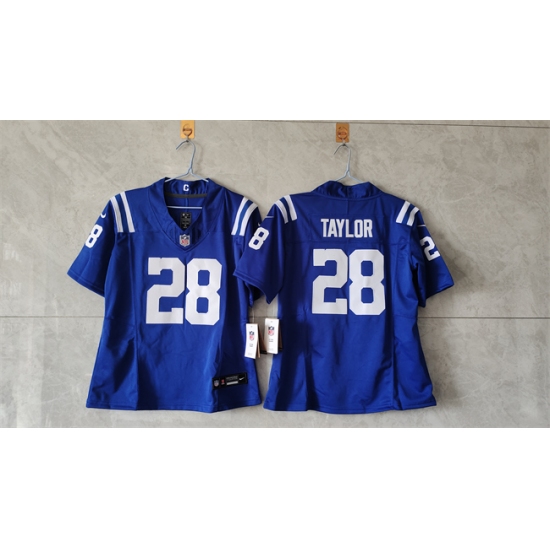 Women's Indianapolis Colts #28 Jonathan Taylor Blue 2024 F.U.S.E. Vapor Stitched Jersey(Run Small)