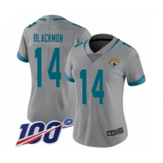 Women's Jacksonville Jaguars #14 Justin Blackmon Silver Inverted Legend Limited 100th Season Football Jersey