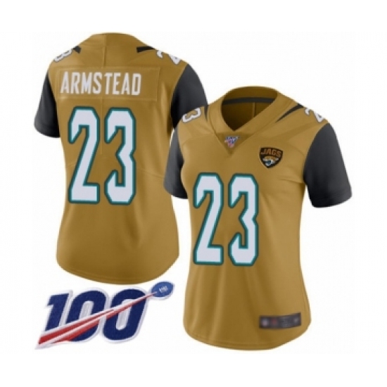 >Women's Jacksonville Jaguars #23 Ryquell Armstead Limited Gold Rush Vapor Untouchable 100th Season Football Jersey