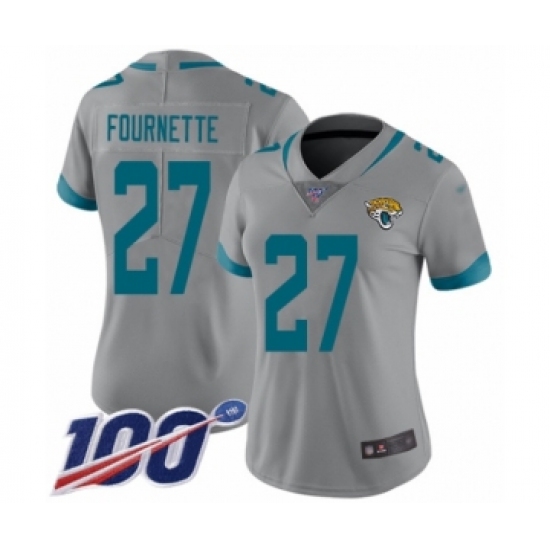 Women's Jacksonville Jaguars #27 Leonard Fournette Silver Inverted Legend Limited 100th Season Football Jersey