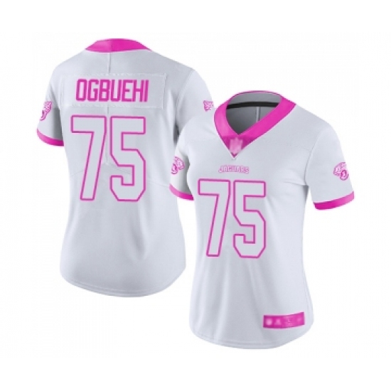 >Women's Jacksonville Jaguars #75 Cedric Ogbuehi Limited White Pink Rush Fashion Football Jersey