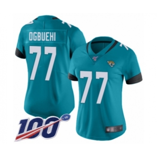 Women's Jacksonville Jaguars #77 Cedric Ogbuehi Teal Green Alternate Vapor Untouchable Limited Player 100th Season Football Jersey