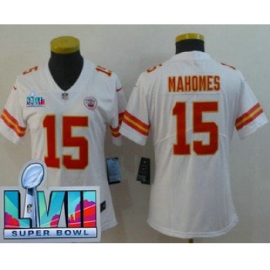 >Women's Kansas City Chiefs #15 Patrick Mahomes Limited White Super Bowl LVII Vapor Jersey