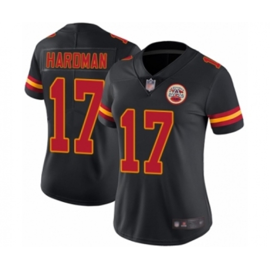 >Women's Kansas City Chiefs #17 Mecole Hardman Limited Black Rush Vapor Untouchable Football Jersey