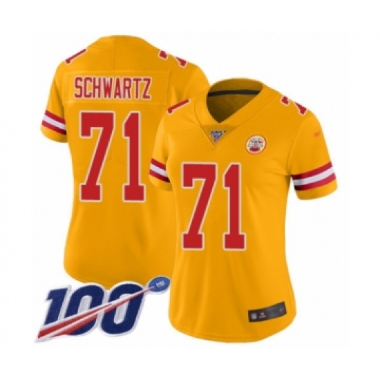 Women's Kansas City Chiefs #71 Mitchell Schwartz Limited Gold Inverted Legend 100th Season Football Jersey
