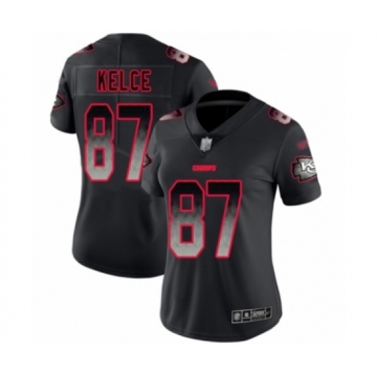 Women's Kansas City Chiefs #87 Travis Kelce Limited Black Smoke Fashion Football Jersey