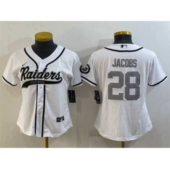 >Women's Las Vegas Raiders #28 Josh Jacobs White Silver With Patch Cool Base Stitched Baseball Jersey(Run Small)