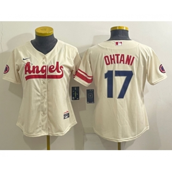 >Women's Los Angeles Angels #17 Shohei Ohtani Cream 2022 City Connect Cool Base Stitched Jersey