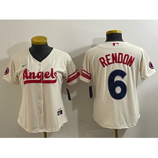>Women's Los Angeles Angels #6 Anthony Rendon Cream 2022 City Connect Cool Base Stitched Jersey