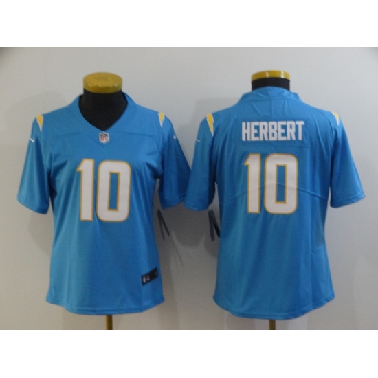 Women's Los Angeles Chargers #10 Justin Herbert Powder Blue 2020 NFL Draft Vapor Limited Jersey