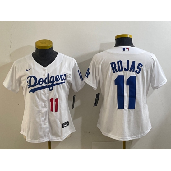 Women's Los Angeles Dodgers #11 Miguel Rojas Number White Cool Base Stitched Jersey