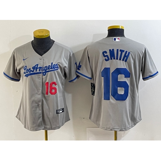 >Women's Los Angeles Dodgers #16 Will Smith Gray Alternate Player Number Team Logo Cool Base Jersey