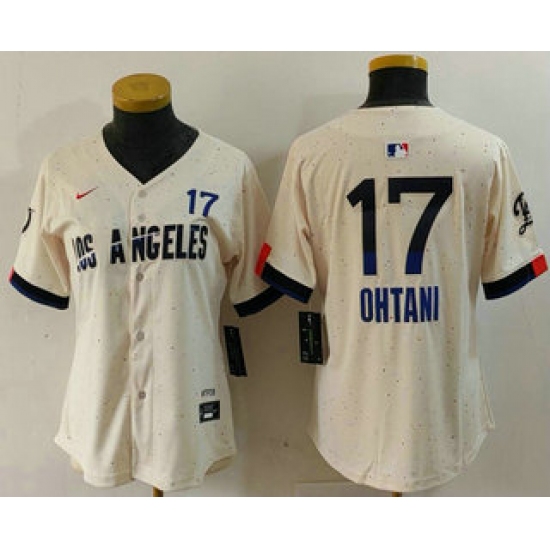>Women's Los Angeles Dodgers #17 Shohei Ohtani Cream 2024 City Connect Limited Jersey