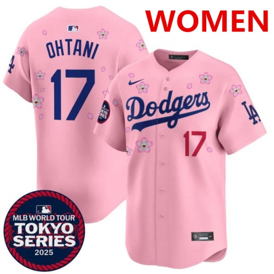 Women's Los Angeles Dodgers #17 Shohei Ohtani Pink 2025 Tokyo Series Limited Stitched Baseball Jersey(Run Small)