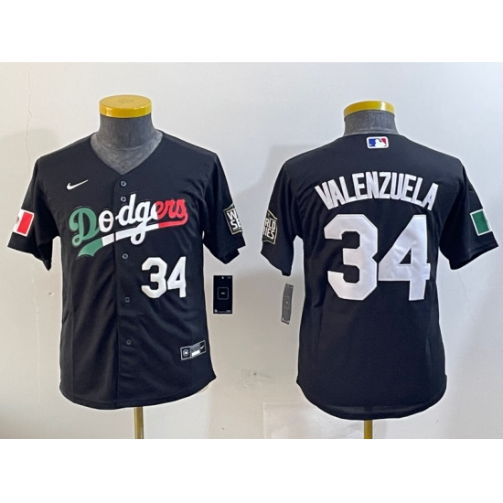 Women's Los Angeles Dodgers #34 Fernando Valenzuela Number Black Mexico 2020 World Series Cool Base Nike Jerseys