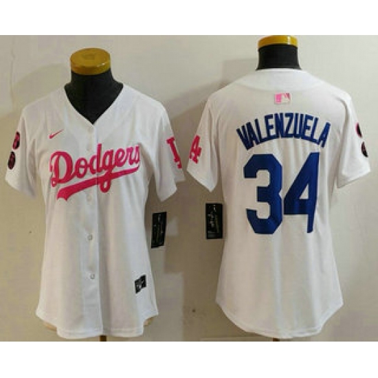 >Women's Los Angeles Dodgers #34 Toro Valenzuela White Pink With Limited Stitched Jersey