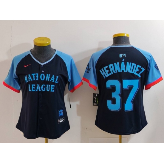 >Women's Los Angeles Dodgers #37 Teoscar Hernandez Navy 2024 All Star Limited Stitched Jersey