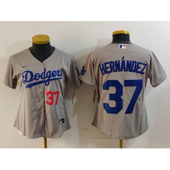 Women's Los Angeles Dodgers #37 Teoscar Hernandez Number Grey Cool Base Stitched Jersey
