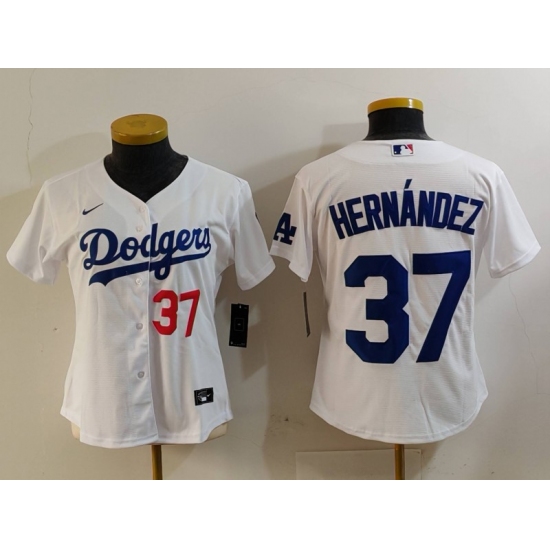 >Women's Los Angeles Dodgers #37 Teoscar Hernandez Number White Cool Base Stitched Jersey