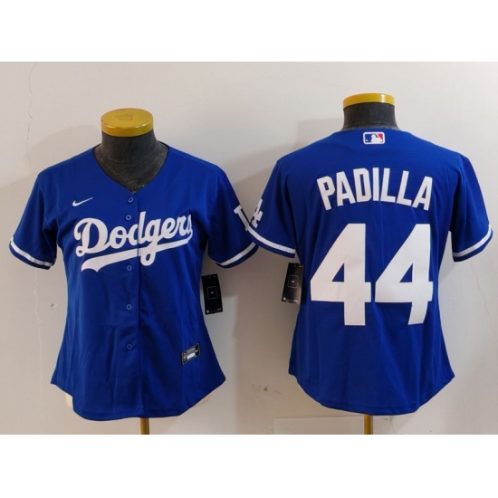 >Women's Los Angeles Dodgers #44 Vicente Padilla Blue Cool Base Stitched Jersey