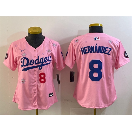 Women's Los Angeles Dodgers #8 Enrique Hernández Pink 2025 Tokyo Series Limited Stitched Baseball Jersey