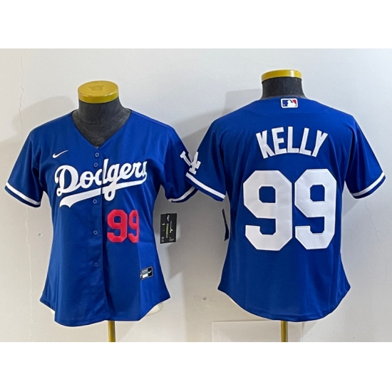 >Women's Los Angeles Dodgers #99 Joe Kelly Number Blue Stitched Cool Base Nike Jersey