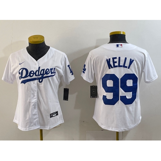 >Women's Los Angeles Dodgers #99 Joe Kelly White Stitched Cool Base Nike Jersey