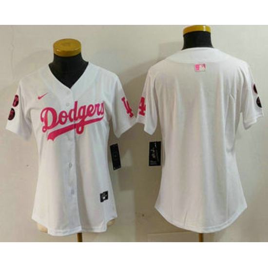 Women's Los Angeles Dodgers Blank White Pink With Limited Stitched Jersey
