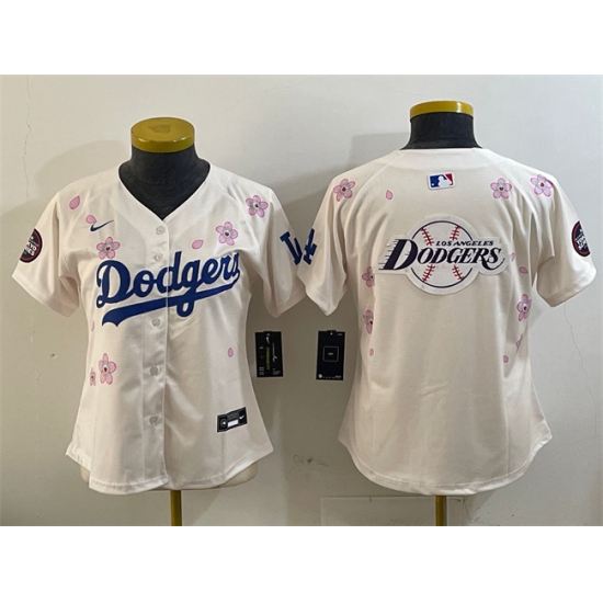 >Women's Los Angeles Dodgers Team Big Logo Cream 2025 Tokyo Series Limited Stitched Baseball Jersey(Run Small)