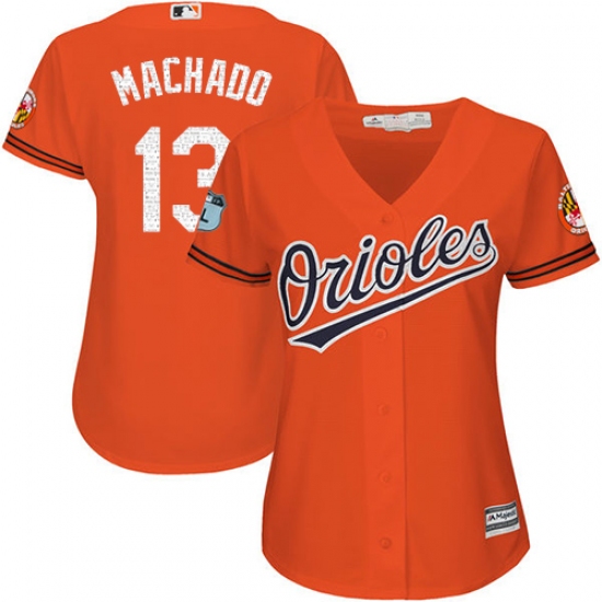 Home>MLB>Baltimore Orioles>Manny Machado>Women's Majestic Baltimore Orioles #13 Manny Machado Authentic Orange 2017 Spring Training Cool Base MLB Jersey