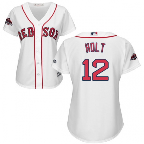 >Women's Majestic Boston Red Sox #12 Brock Holt Authentic White Home 2018 World Series Champions MLB Jersey