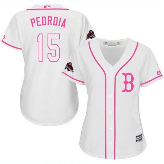 Women's Majestic Boston Red Sox #15 Dustin Pedroia Authentic White Fashion 2018 World Series Champions MLB Jersey