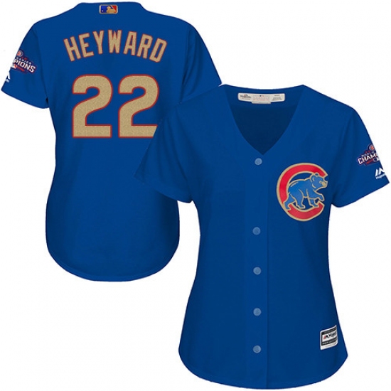 Home>MLB>Chicago Cubs>Jason Heyward>Women's Majestic Chicago Cubs #22 Jason Heyward Authentic Royal Blue 2017 Gold Champion MLB Jersey