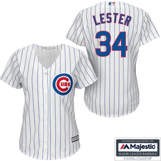 Home>MLB>Chicago Cubs>Jon Lester>Women's Majestic Chicago Cubs #34 Jon Lester Authentic White/Blue Strip Fashion MLB Jersey