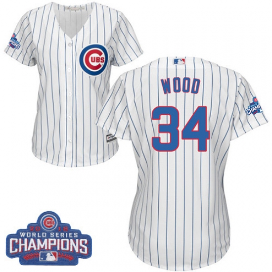 Home>MLB>Chicago Cubs>Kerry Wood>Women's Majestic Chicago Cubs #34 Kerry Wood Authentic White Home 2016 World Series Champions Cool Base MLB Jersey