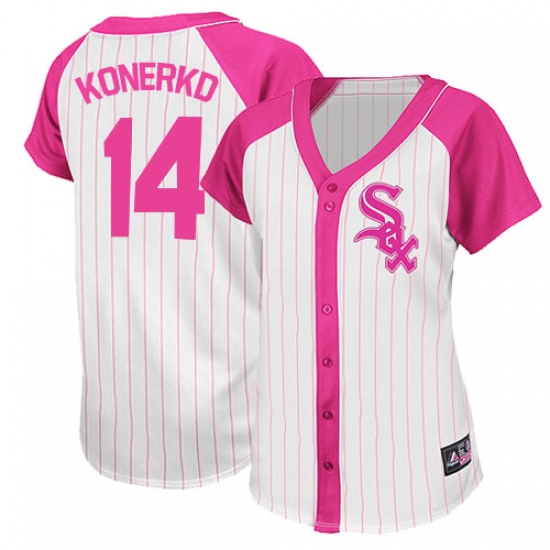 Home>MLB>Chicago White Sox>Paul Konerko>Women's Majestic Chicago White Sox #14 Paul Konerko Authentic White/Pink Splash Fashion MLB Jersey