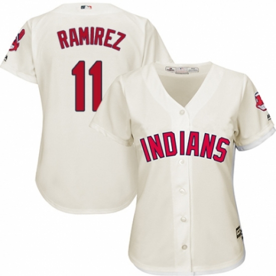 Women's Majestic Cleveland Indians #11 Jose Ramirez Replica Cream Alternate 2 Cool Base MLB Jersey