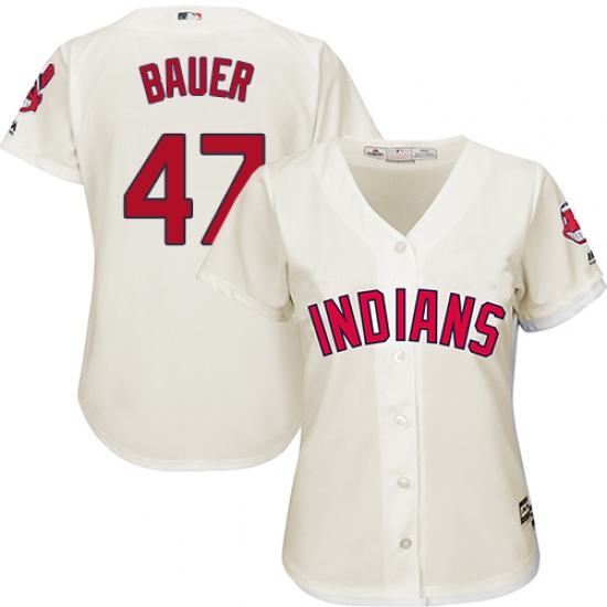 Home>MLB>Cleveland Indians>Trevor Bauer>Women's Majestic Cleveland Indians #47 Trevor Bauer Authentic Cream Alternate 2 Cool Base MLB Jersey