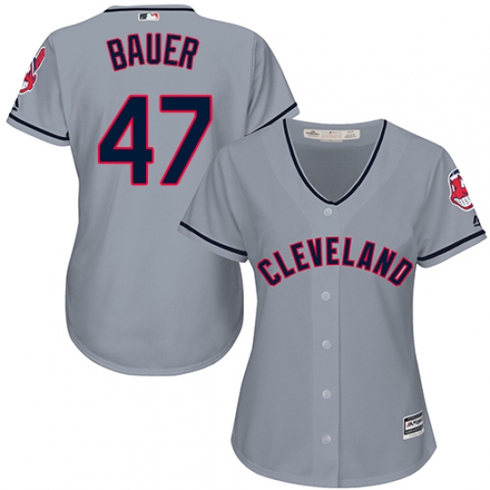 Women's Majestic Cleveland Indians #47 Trevor Bauer Authentic Grey Road Cool Base MLB Jersey