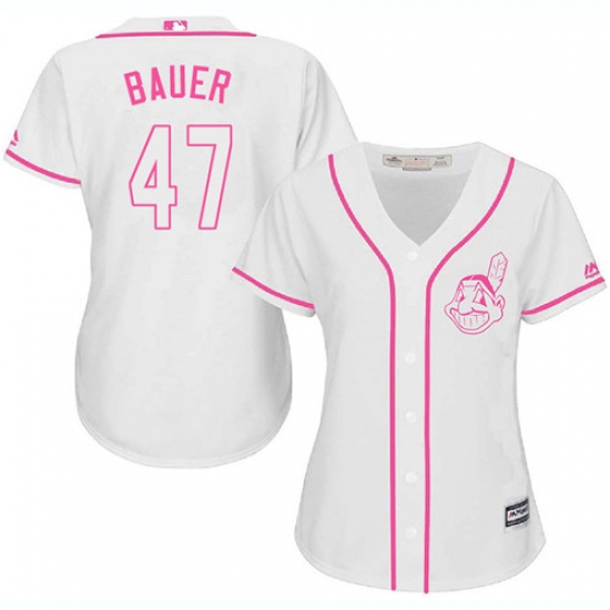 Home>MLB>Cleveland Indians>Trevor Bauer>Women's Majestic Cleveland Indians #47 Trevor Bauer Authentic White Fashion Cool Base MLB Jersey
