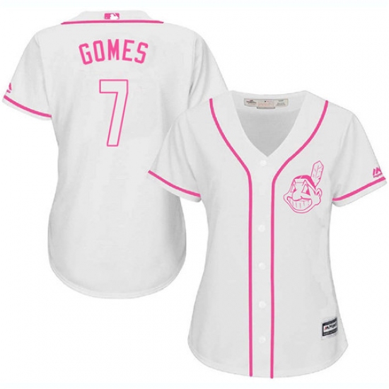 Home>MLB>Cleveland Indians>Yan Gomes>Women's Majestic Cleveland Indians #7 Yan Gomes Authentic White Fashion Cool Base MLB Jersey