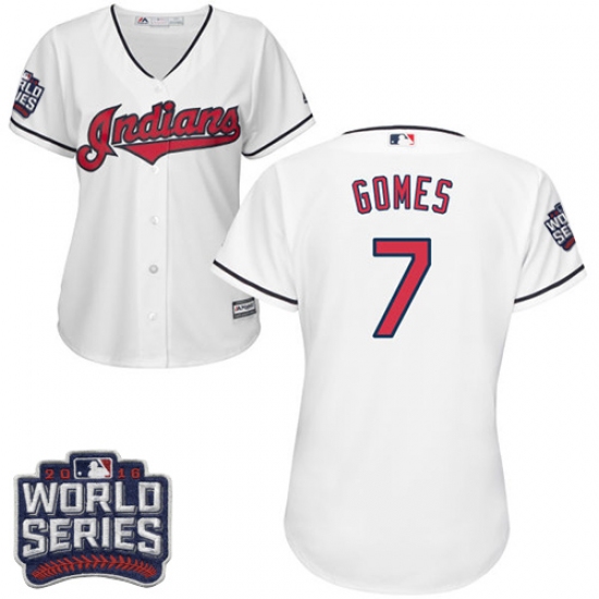 Home>MLB>Cleveland Indians>Yan Gomes>Women's Majestic Cleveland Indians #7 Yan Gomes Authentic White Home 2016 World Series Bound Cool Base MLB Jersey