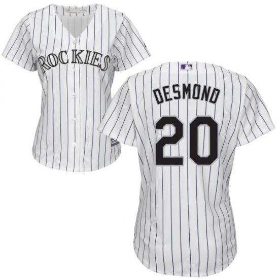 Home>MLB>Colorado Rockies>Ian Desmond>Women's Majestic Colorado Rockies #20 Ian Desmond Replica White Home Cool Base MLB Jersey