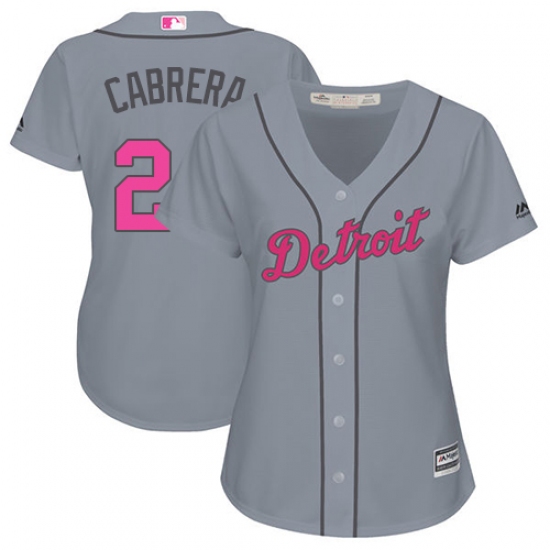 Women's Majestic Detroit Tigers #24 Miguel Cabrera Replica Grey Mother's Day Cool Base MLB Jersey