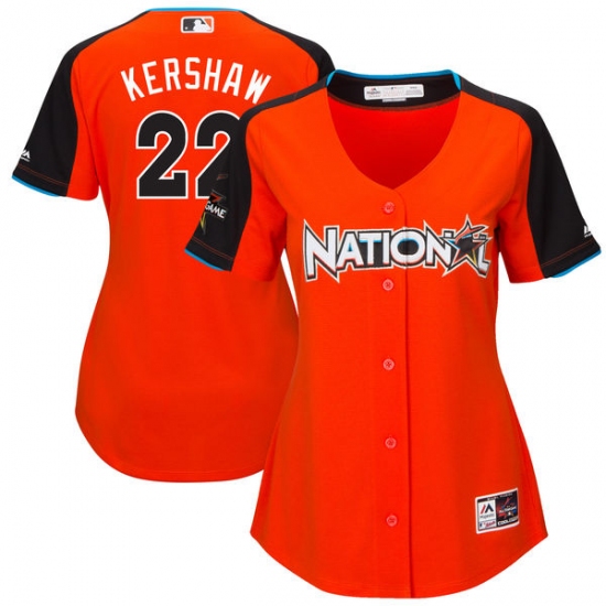 Women's Majestic Los Angeles Dodgers #22 Clayton Kershaw Replica Orange National League 2017 MLB All-Star MLB Jersey