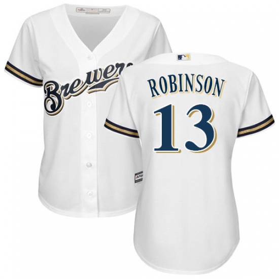 Home>MLB>Milwaukee Brewers>Glenn Robinson>Women's Majestic Milwaukee Brewers #13 Glenn Robinson Authentic White Home Cool Base MLB Jersey