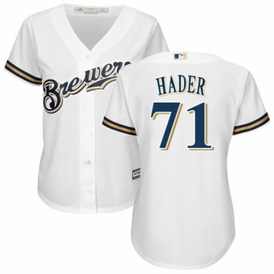 >Women's Majestic Milwaukee Brewers #71 Josh Hader Replica Navy Blue Alternate Cool Base MLB Jersey