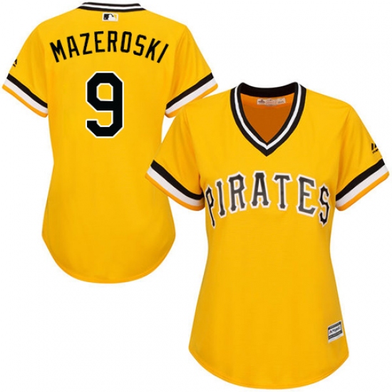 Women's Majestic Pittsburgh Pirates #9 Bill Mazeroski Replica Gold Alternate Cool Base MLB Jersey