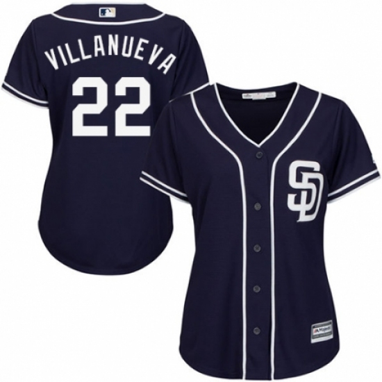 Women's Majestic San Diego Padres #22 Christian Villanueva Replica Navy Blue Alternate 1 Cool Base MLB Jersey